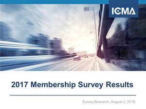 ICMA membership survey covers various topics including member satisfaction, membership value and benefits, customer service, outreach, and various ICMA programs and products. An electronic survey was sent to ICMA members in February 2018. 2,610 responses were received, which yielded a response rate of 25% (the highest response rate from members to date for a member survey).