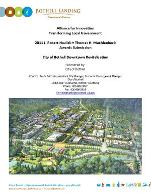 Bothell is a city of over 33,000 people with award-winning educational institutions from kindergarten through higher education and a growing biomedical and high-tech economy. A suburban city near Seattle, Bothell, like many other communities, experienced significant office park, strip mall and plat housing growth over the past 60 years. While this growth created revenue and opportunities, it also disconnected the community from its downtown which has become snarled in traffic and auto oriented retail. In 2005, Bothell City leaders led a two and a half year envisioning process for a revitalized downtown. Residents, businesses and government came together to craft a plan, bringing open space, businesses, retailers, housing, and employment to downtown Bothell. A broad base of community support was established through multiple outreach meetings, envisioning sessions and the formation of a 60-person stakeholder group that included residents, business owners and employees. City council, even with elected transitions, firmly supported the vision. The result was the Bothell Downtown Subarea Plan, a comprehensive document outlining the key infrastructure improvements, zoning changes, development guidelines, open space enhancements, placemaking elements and community vision for the City’s downtown.