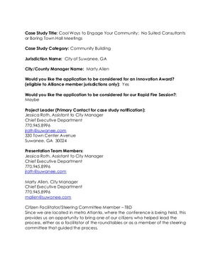 The Suwanee City Council determined a wide-ranging strategic plan (i.e., a plan that goes beyond land use planning) would provide the roadmap for where Suwanee needs to head next. Creating a shared community vision for the next decade would require that citizens be engaged more actively, broadly, and intensely in the process than ever before. Community involvement in this plan was not just a nicety or “check- the-box” component; it would be crucial. Therefore, Suwanee engaged citizens in unique, even quirky, ways. No stodgy “town hall” meetings were held. Instead, the City kicked off the process with a FIVE-week open house, held in an empty downtown storefront, replete with games, interactive exercises, and moon pies. Then, nearly 300 residents participated in a series of roundtable discussions; the City made a conscious decision that no staff, Councilmembers, or consultants attend. And, when it came time to release the plan draft, Suwanee hosted, not a meeting but, a covered-dish picnic complete with a bluegrass band.
