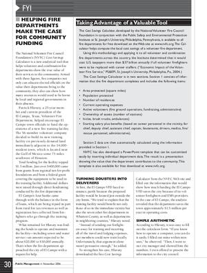 This article describes a free resource available to help volunteer and combination fire departments show the value of their services to the community. The National Volunteer Fire Council Foundation's Cost Savings Calculator is available at www.nvfc.org.