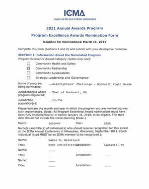 The Town of Hooksett, NH developed the Firefighters Challenge as a way for local firefighters to interact with students while teaching them the importance of fire safety, physical fitness, and teamwork. The Town partnered with the Fire Department, the Firefighters’ Association, the Hooksett School System, and the Cawley Middle School to make this an annual event.