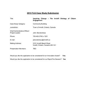 Innisfil created a community-based strategic plan that reflects the collective vision, values and priorities for town's future. The intent of the plan was to build a unique Innisfil identity, encourage long term sustainable planning and facilitate positive community development through a multi-faceted citizen engagement model. Town staff worked to adopt best practices and practical uses of citizen engagement methods in order to facilitate citizen input in the strategic planning process.
