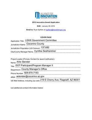 Coconino County convenes representatives from various county departments to influence a cultural shift towards increased efficiencies across the agency. This LEAN Government Committee focuses on leveraging internal expertise to deploy simple, sensible approaches towards refining systems. The innovation lies in the emphasis on relying upon existing employees, at every level of the organization from management to front line staff, to serve as experts on the committee. These experts are best equipped to identify areas and strategies for sustainable change toward the mission of identifying inefficient County practices and redesigning them to make them more efficient.