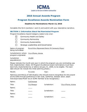Before the implementation of this project, the two square mile area of Peoria, Arizona known as “District 30” was one of the most dangerous places in the city. This neighborhood had become a haven for criminals, with notoriously high levels of violent crime, drug dealing, and vandalism. After years of deterioration, the situation became impossible for the city to ignore. Because the police had come to be viewed with suspicion in this area, it was clear that traditional police action alone would not be sufficient to resolve District 30’s problems. Instead, the challenge required a new, more innovative approach that focused on building trust. The Peoria Police Department implemented a new project designed with one end in mind--the establishment of a long-term, sustainable relationship built on the foundation of cooperative problem-solving through the combination of community-level action and government resources. The coordinated involvement of community advocates, non-profit groups and other city departments meant that the police could assume a less conspicuous role. As a result of this intradepartmental cooperation and community engagement, District 30 has taken the first steps toward becoming a more peaceful, vibrant community.