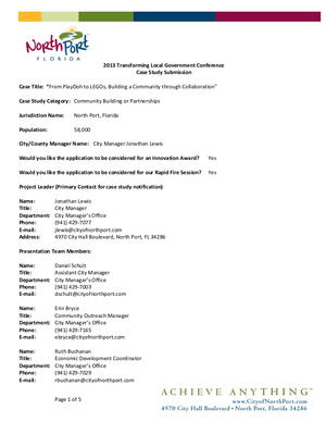 Known for its youthful population, youthful mindset, and youthful energy, the City of North Port’ sought new ways to foster collaboration. The city created new methods to track and measure results that are easy to do and don’t take much staff time, developed innovative ways to listen to their community, and invented interesting techniques for telling their story. Through this initiative the City has learned how to listen to their community, take risks, recognize and give tribute to those who help, and measure results to help with to evaluation and adjustments.
