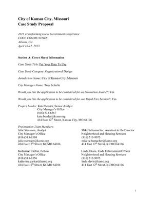 The City of Kansas City, Missouri has formally collected performance data for over forty years. While all agreed the data was useful to collect, a dusty file cabinet in the corner is where it would eventually reside until a new City Manager challenged the staff to put the data to use. City Manager Troy Schulte is a strong believer that a data driven performance measurement program results in better service delivery. In 2010, the City Manager developed a centralized Office of Performance Management, which works closely with the 311 Action Center call center and departmental staff to create and measure a set of key indicators for each department. The performance management staff and the City Manager began to hold weekly performance management meetings to measure the progress toward the targets set for key indicators. Over time, specific service areas/programs were selected to be the central focus of the program.