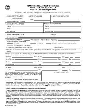 This sample government document by Tennessee's Department of Revenue is a good example of what a tax exempt application for non-profit organizations looks like. States or localities looking to draft their own forms may look to this for guidance.