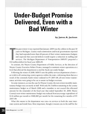 This article shows how Wayne County, MI was able to deliver winter services under budget, despite drastic reductions in funding and while providing services during Michigan’s worse winter in 30 years. Wayne County used a four phase process to accomplish their plan. Phase 1 – identify inefficient areas of winter services; phase 2 – hold department head meetings and plan which inefficient area would yield the most savings if improved; phase 3 – have a department-wide meeting to talk about the challenges facing the department and share the strategies to solve those problems; and phase 4 – train the line staff to utilize the new service delivery methods. Lists the achievements of this approach such as a 3.2 million dollars savings.