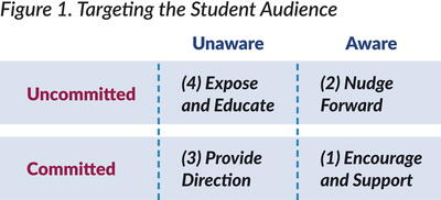 Group 1 consists of those individuals who are both aware of and committed to careers in local government. These individuals simply need continued encouragement and support as they move forward toward their goals. They tend to embrace participation in the student chapters, particularly when doing so provides meaningful networking and mentoring opportunities.