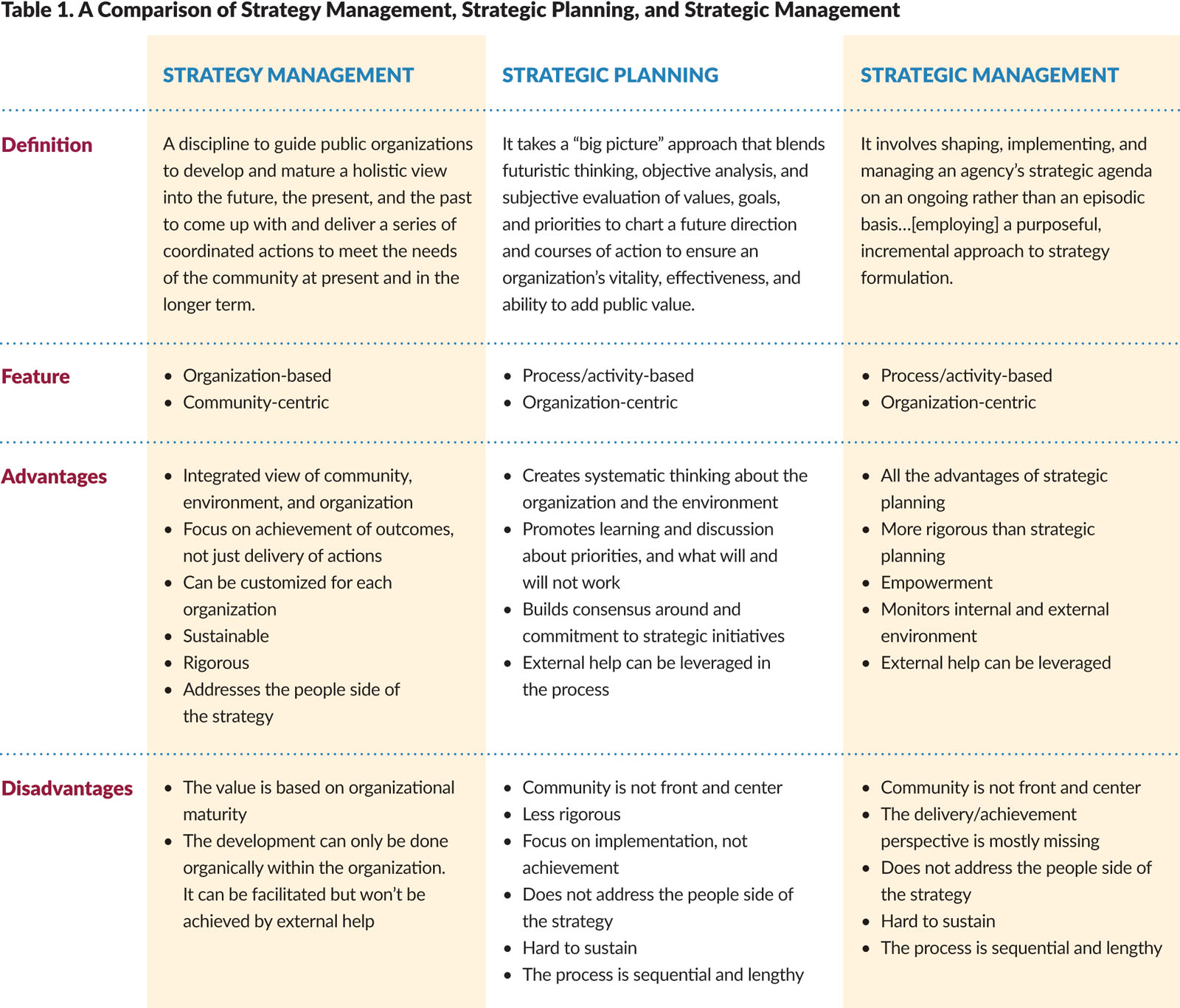 How can strategy management add value compared to its close siblings—strategic planning and strategic management? (See Table 1.)
