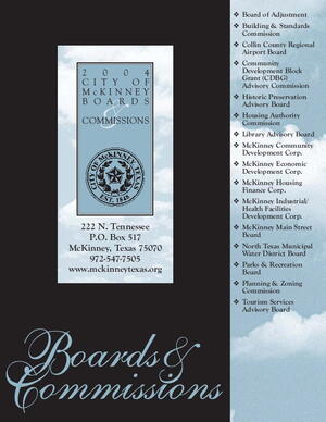 This document solicits volunteers for McKinney, Texas, boards and commissions. Includes a candidate application form, application process, and eligibility requirements. Lists and describes the various boards and commissions.