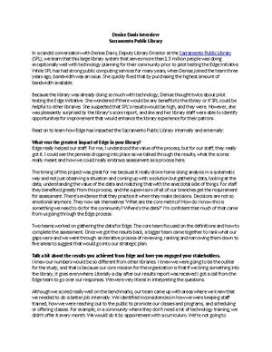 A case study to review the implementation of the Edge program in the Public Library of Sacramento, CA. The case study is based off of an interview with Denise Davis, Deputy Library Director.