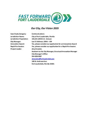 As the City of Fort Lauderdale approached its Centennial in 2011, community members were actively engaged to reflect on and honor the City's past while setting out to develop an aspiration, inspirational, and above all, inclusive Vision Plan that outlines the hopes and dreams of all its neighbors: Fast Forward Fort Lauderdale 2035.