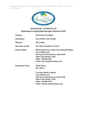 Through this unique management style, the City Manager recruited employees to serve as team leaders and members through an application process. Over the course of a year, professional employees have experienced skill development by tackling challenges beyond their primary roles and expertise. This program has had a significant and extremely positive impact on the organization and has been acknowledged by the Florida City and County Management Association by recognizing City Manager Jim Landon for a Career Excellence Award for this innovative program.